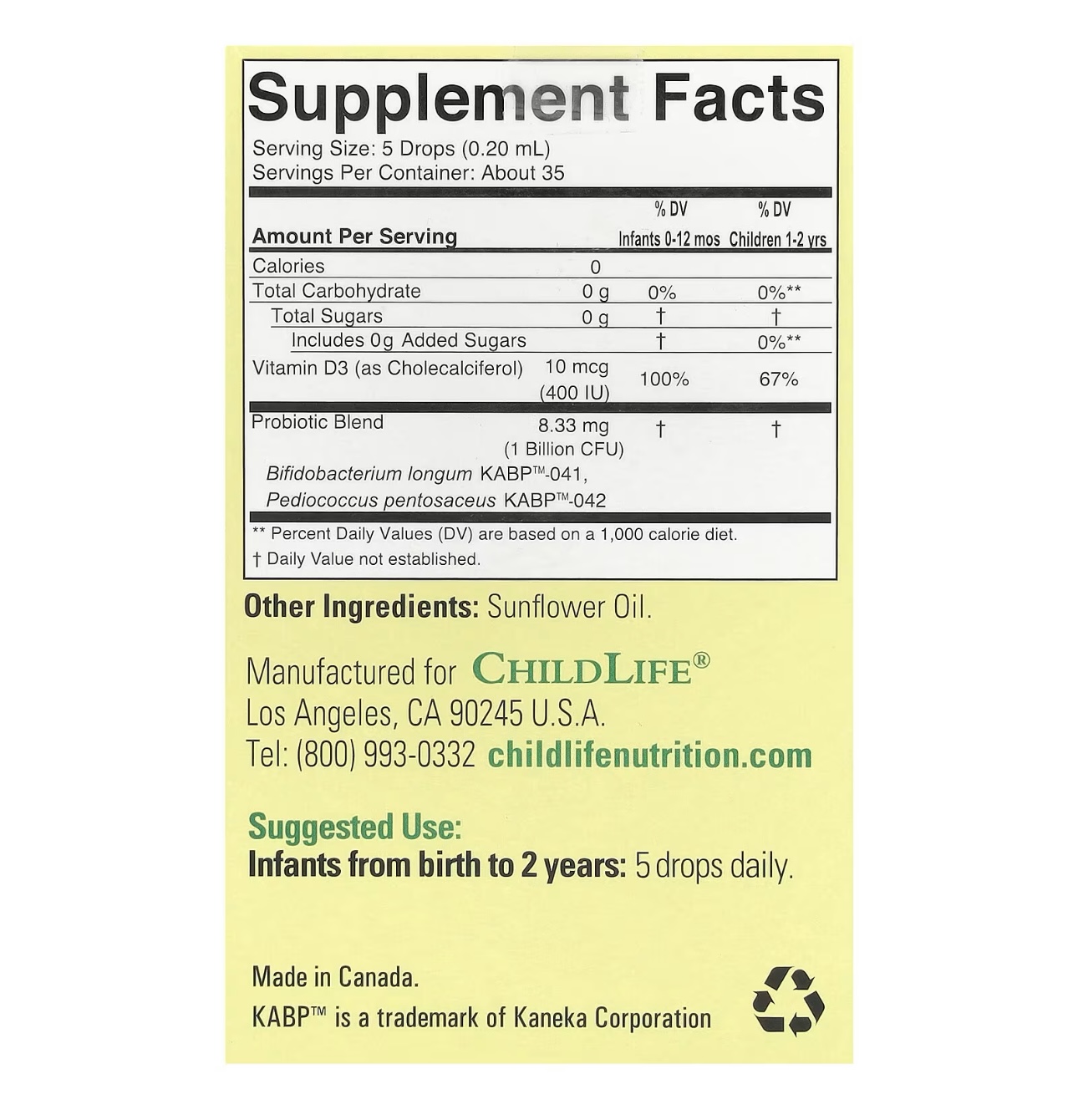 Капли с пробиотиком от ChildLife Essentials® InfantBiotics® содержат комбинацию двух тщательно отобранных штаммов пробиотиков.