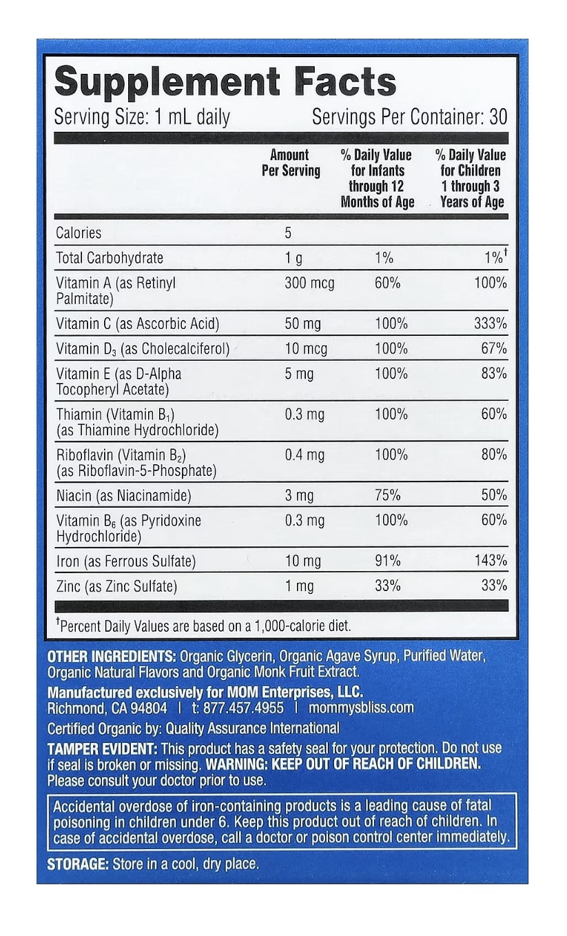 Детский мультивитаминный комплекс с железом от Mommy's Bliss обеспечивает организм необходимыми витаминами для здорового роста, развития костей и поддержки иммунитета.