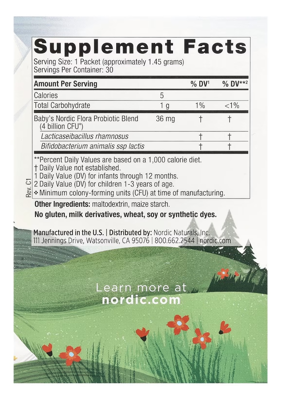 С широко изученными штаммами лактобактерии рамнозус (L. rhamnosus) GG и бифидобактерии (Bifidobacterium animalis ssp. lactis) в составе, данный порошок без ароматизаторов выпускается в предварительно отмеренных пакетиках 1,5 г, которые можно смешать с жидкостью (грудное молоко, молочная смесь и т. д.) или нетвердой пищей для облегчения усвоения.