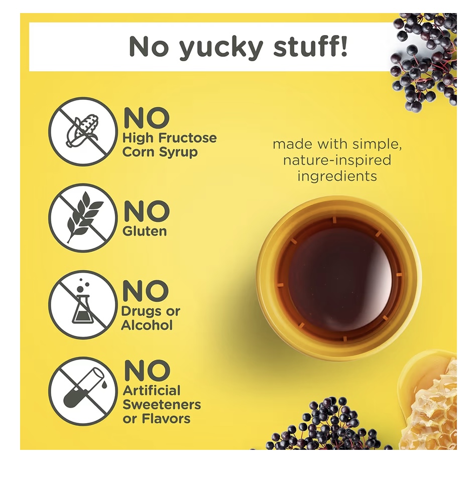 - Восхитительный натуральный вкус: наши безопасные и эффективные сиропы от кашля подслащены натуральным способом, в наших бутылочках содержится только успокаивающий мед и ягоды бузины.